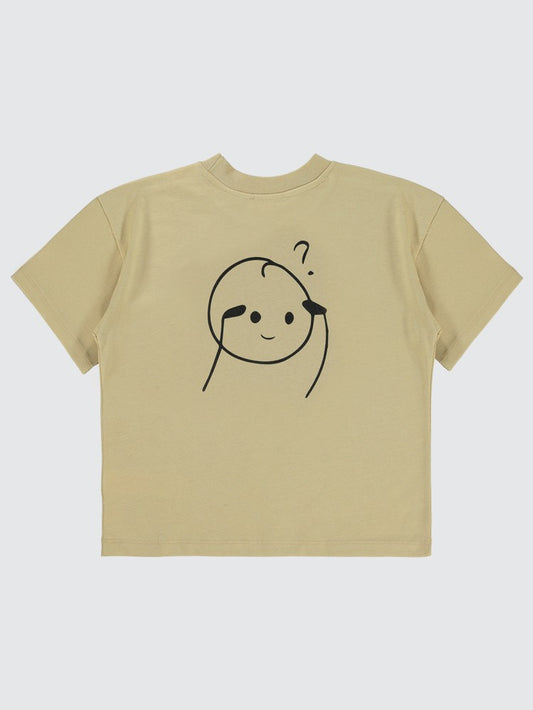 Mivil boys soru i̇şareti baskılı 6-9 yaş tişört - bej