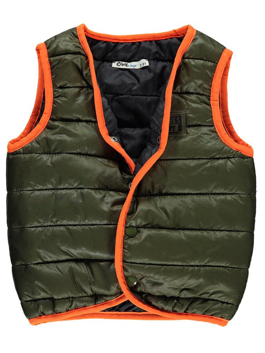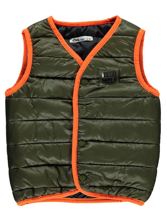 Civil boys çıt çıtlı ray desen kapitone 2-5 yaş yelek - haki