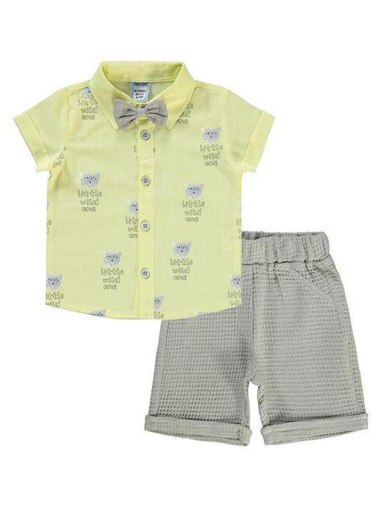 Kumru little wild one baskılı papyonlu 6-18 ay takım - sarı