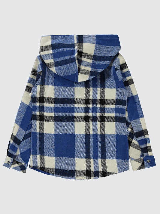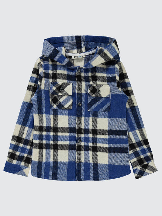 Civil boys kapşonlu ekoseli 10-13 yaş gömlek - mavi