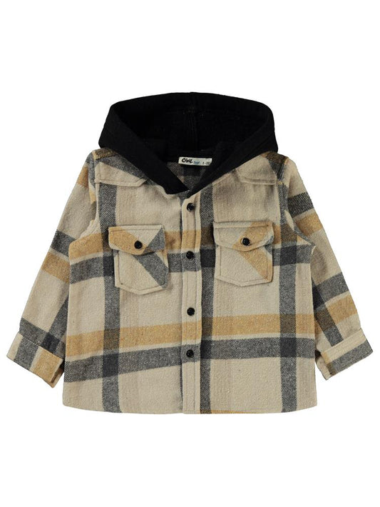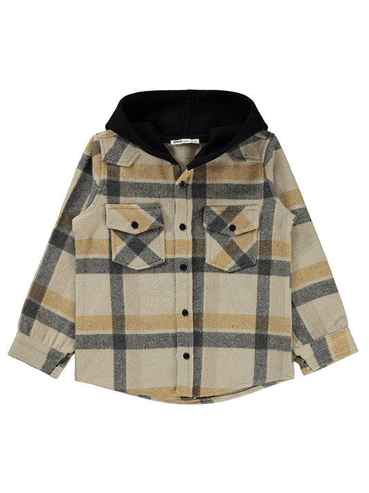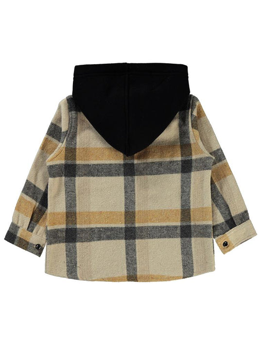 Civil boys çift cepli eekose desenli kapşonlu 2-5 yaş gömlek - hardal