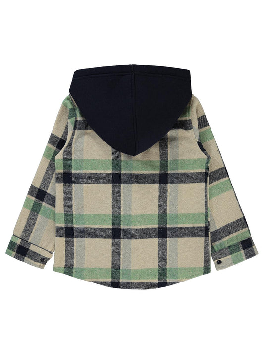 Civil boys çift cepli eekose desenli kapşonlu 2-5 yaş gömlek - haki