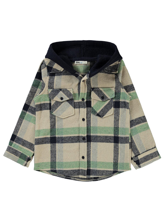 Civil boys çift cepli eekose desenli kapşonlu 6-9 yaş gömlek - haki
