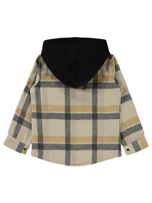 Civil boys çift cepli eekose desenli kapşonlu 6-9 yaş gömlek - hardal