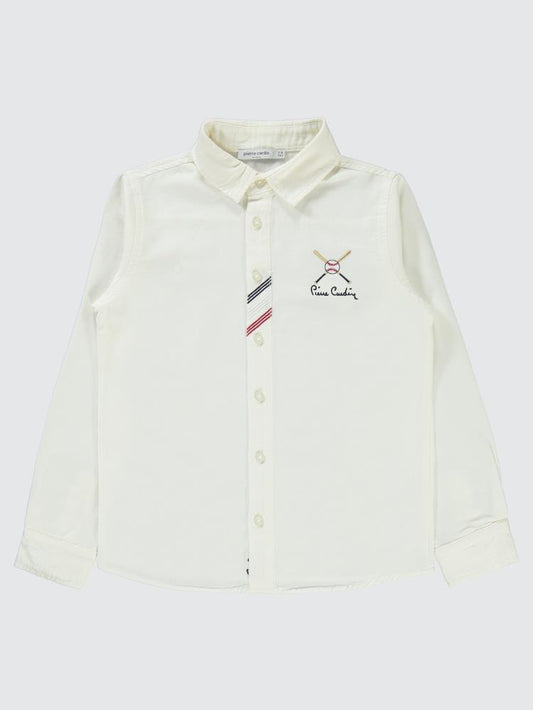 Pierre cardin patı nakışlı 6-9 yaş gömlek - ekru