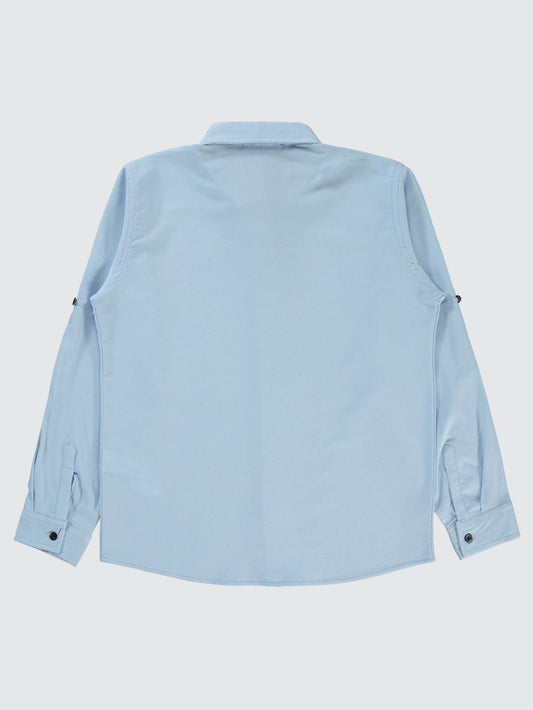 Civil boys yelkenli nakışlı hasır kumaş 10-13 yaş gömlek - mavi