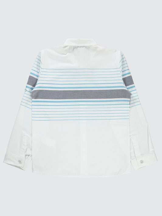 Civil boys çizgili yelken nakışlı 10-13 yaş gömlek - mavi