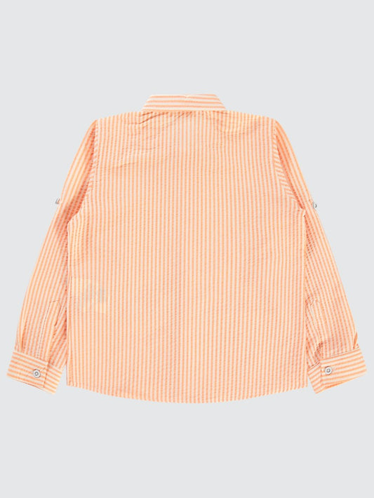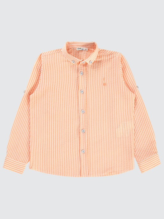 Civil boys çizgili yelken nakışlı 6-9 yaş gömlek - turuncu