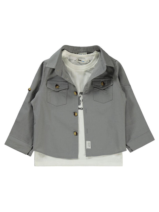 Civil boys kapak cepli tişörtlü gömlek 2-5 yaş gömlek - gri