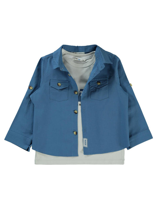 Civil boys kapak cepli tişörtlü gömlek 2-5 yaş gömlek - mavi