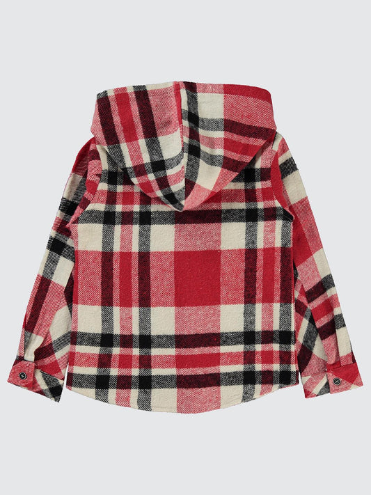 Civil boys kapşonlu ekoseli 6-9 yaş gömlek - kırmızı