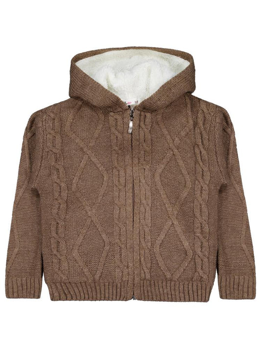 • Civil boys saç örgülü i̇çi polarlı kapşonlu 2-5 yaş hırka - bej