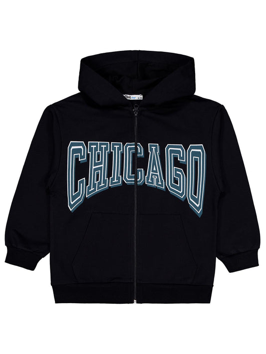Civil boys chıcago baskılı 10-13 yaş hırka - siyah