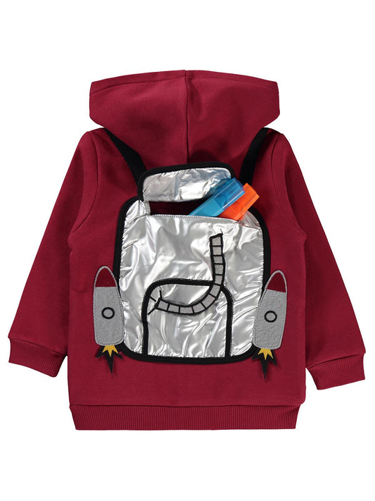 Civil boys roket çanta baskılı 2-5 yaş hırka - bordo