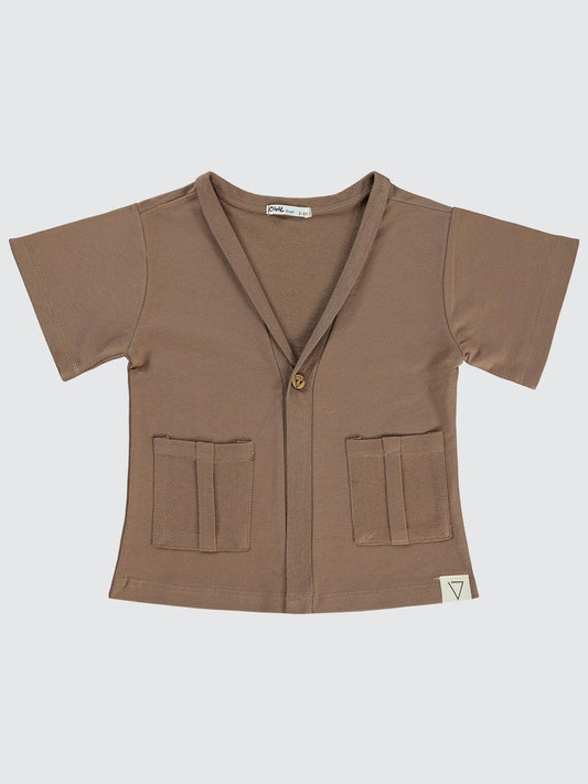 Civil boys arkası baskılı 2-5 yaş hırka - kahve