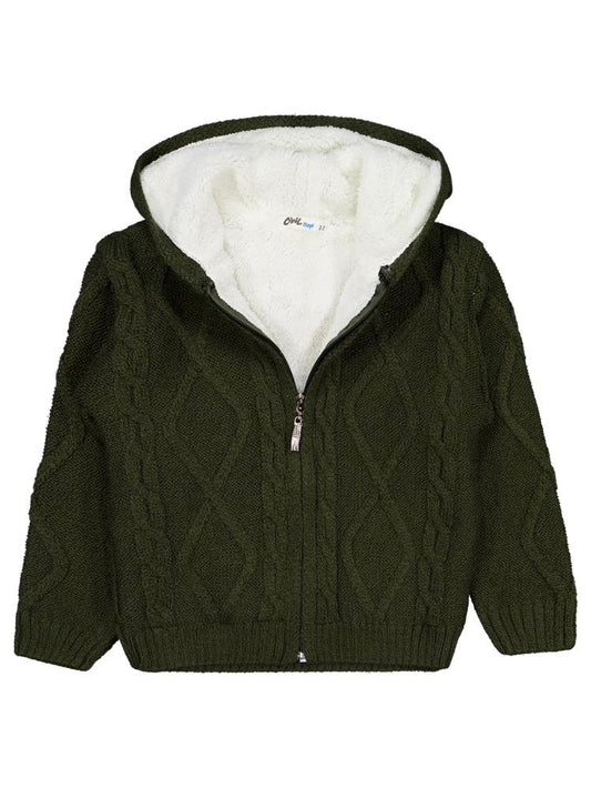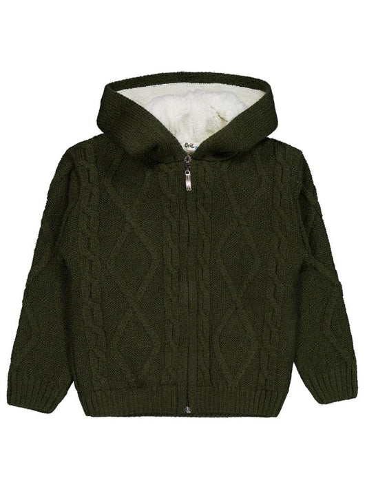 • Civil boys saç örgülü i̇çi polarlı kapşonlu 2-5 yaş hırka - yeşil