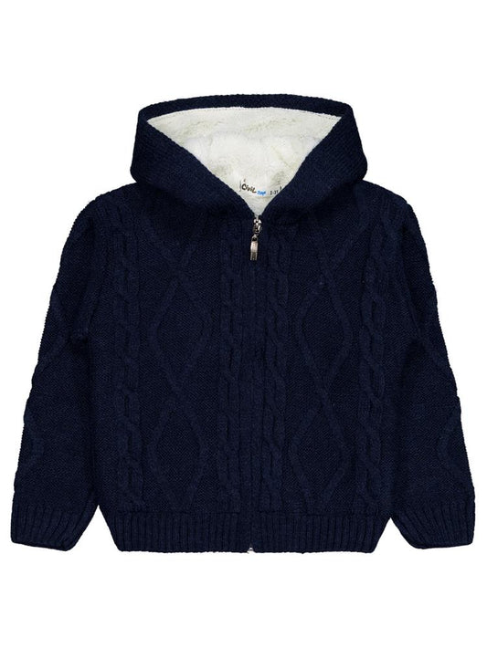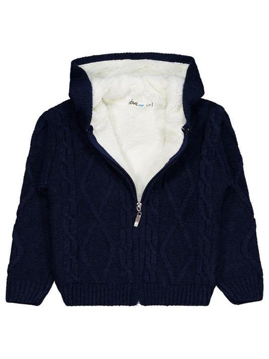 • Civil boys saç örgülü i̇çi polarlı kapşonlu 2-5 yaş hırka - lacivert