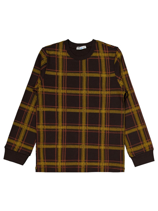 Civil boys ekose empirmeli 6-9 yaş pijama takımı - kahverengi