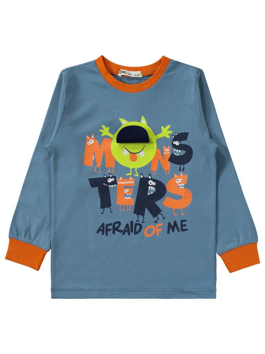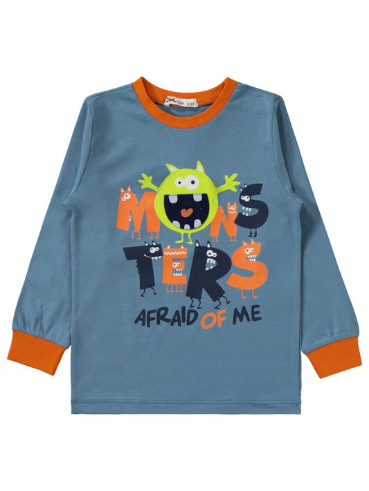 Civil boys monster baskılı 2-5 yaş pijama takımı - lacivert