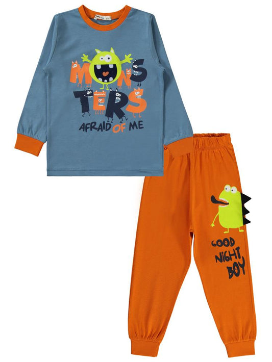 Civil boys monster baskılı 2-5 yaş pijama takımı - turuncu