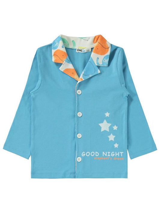 Civil boys düğmeli good nıght baskılı 2-5 yaş pijama takımı - mavi