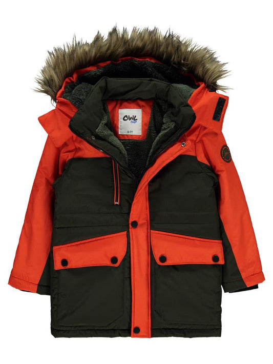 Civil boys kapşonlu welsoflu pilot 6-9 yaş mont - haki