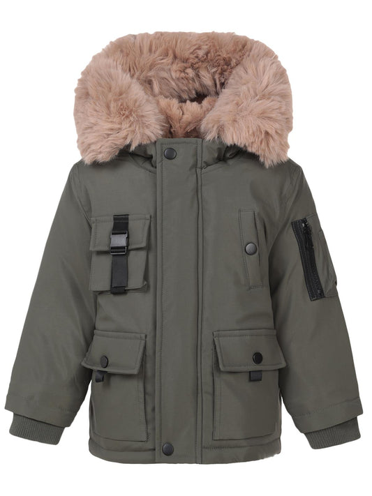 • Civil boys kapşonu kürklü 2-5 yaş mont - haki