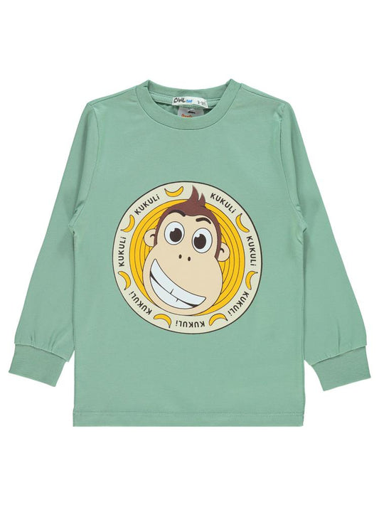 Kukuli baskılı 2-5 yaş pijama takımı - haki