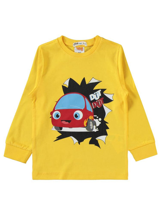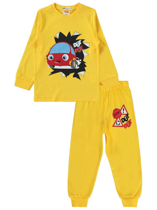 Düt düt baskılı 2-5 yaş pijama takımı - sarı