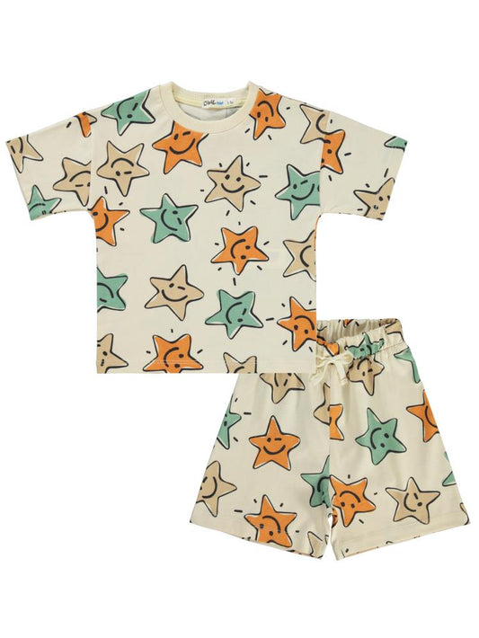 Civil boys gülen yıldız empirme baskılı 2-5 yaş pijama takımı - fil dişi