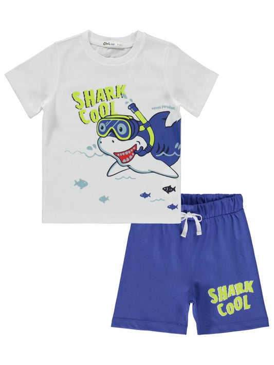 Civil boys shark cool baskılı 2-5 yaş pijama takımı - beyaz