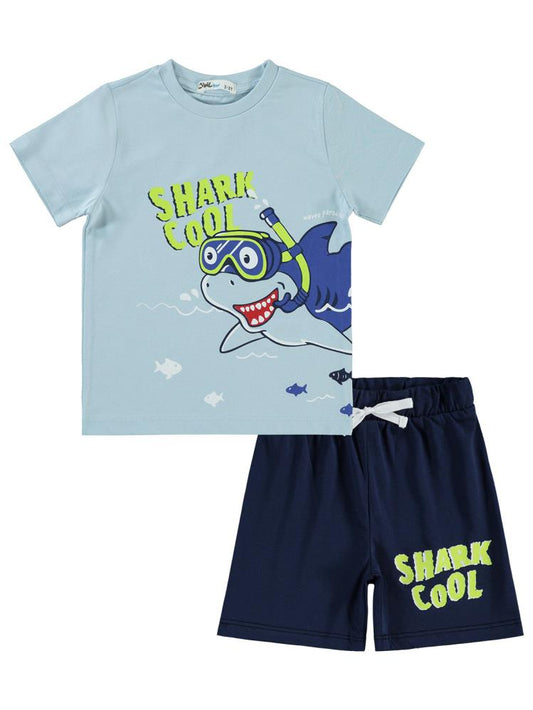 Civil boys shark cool baskılı 2-5 yaş pijama takımı - mavi