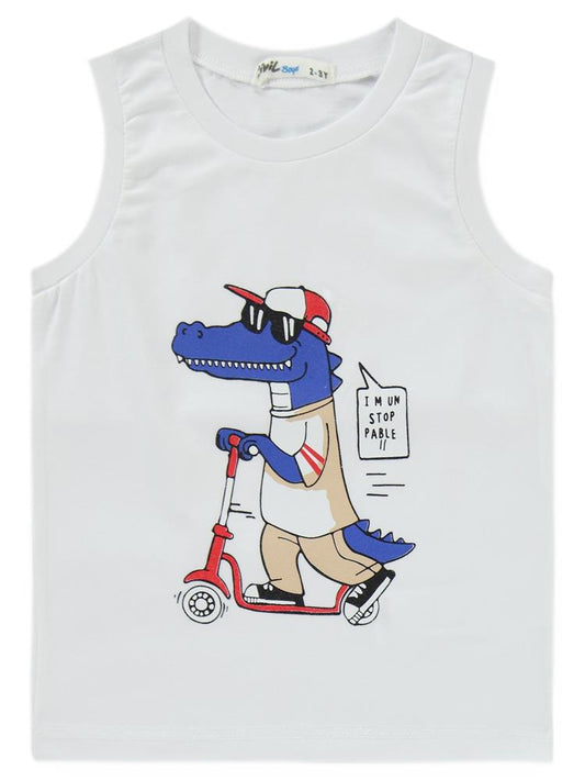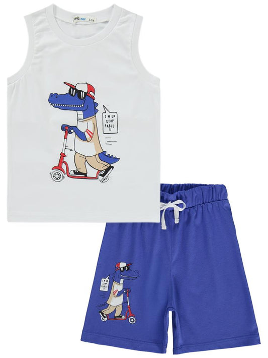 Civil boys timsah baskılı 2-5 yaş pijama takımı - beyaz