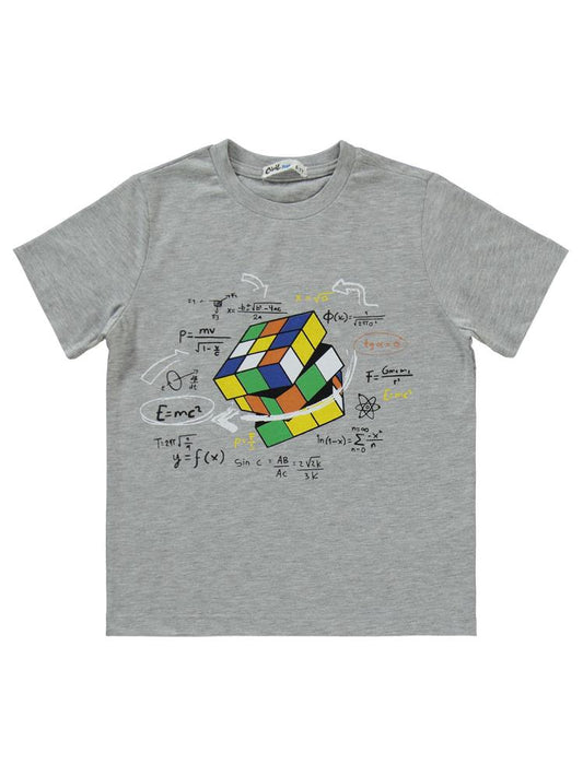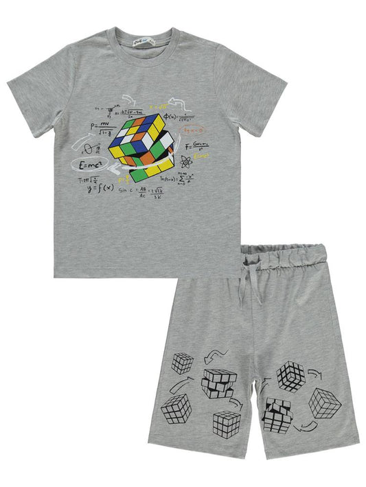 Civil boys rubik küp baskılı 6-9 yaş pijama takımı - gri