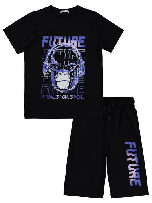 Civil boys future baskılı 10-13 yaş pijama takımı - siyah