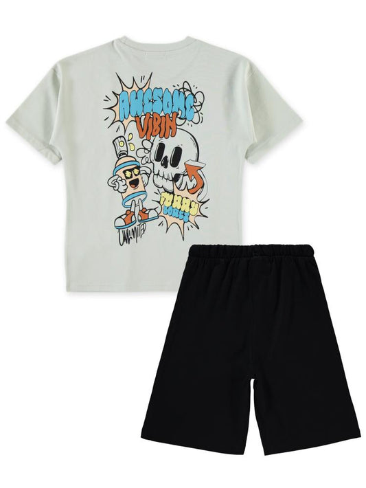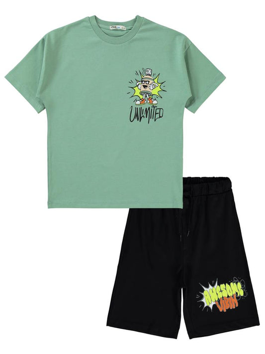 Civil boys skate baskılı 10-13 yaş pijama takımı - haki