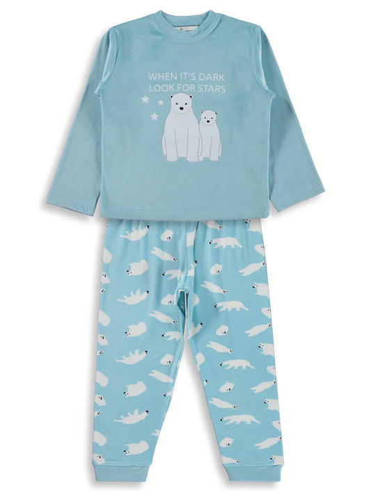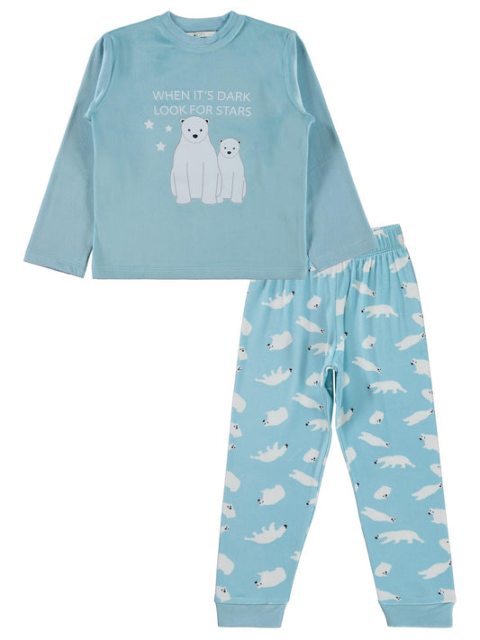Dorka golsut kutup ayısı basıklı 3-11 yaş pijama takımı - mavi