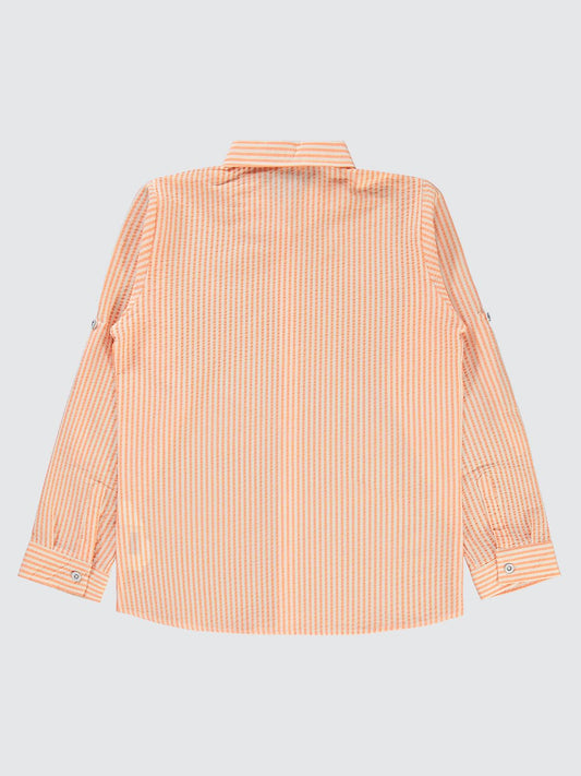 Civil boys çizgili yelken nakışlı 10-13 yaş gömlek - turuncu