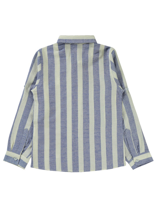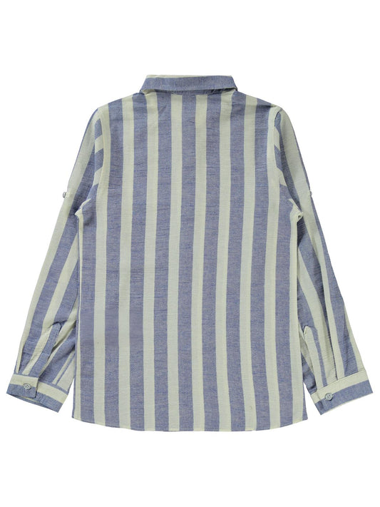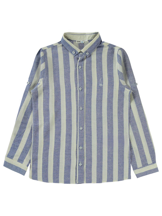 Civil boys çizgili yelken nakışlı 10-13 yaş gömlek - mavi