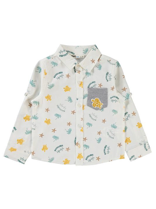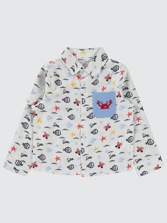 Civil boys su altı hayvanları baskılı 2-5 yaş gömlek - yeşil