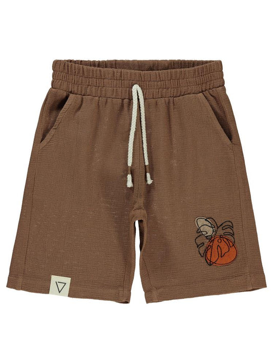 Civil boys yaprak desenli 6-9 yaş şort - kahverengi