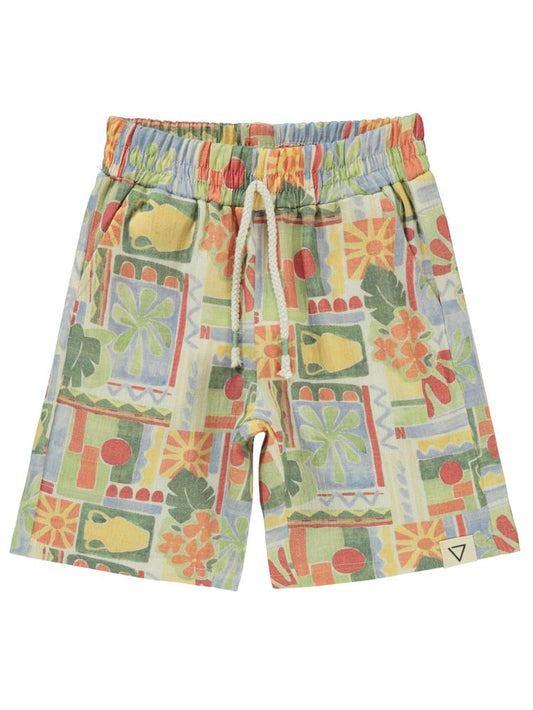 Civil boys etnik desen empirme 2-5 yaş şort - yeşil