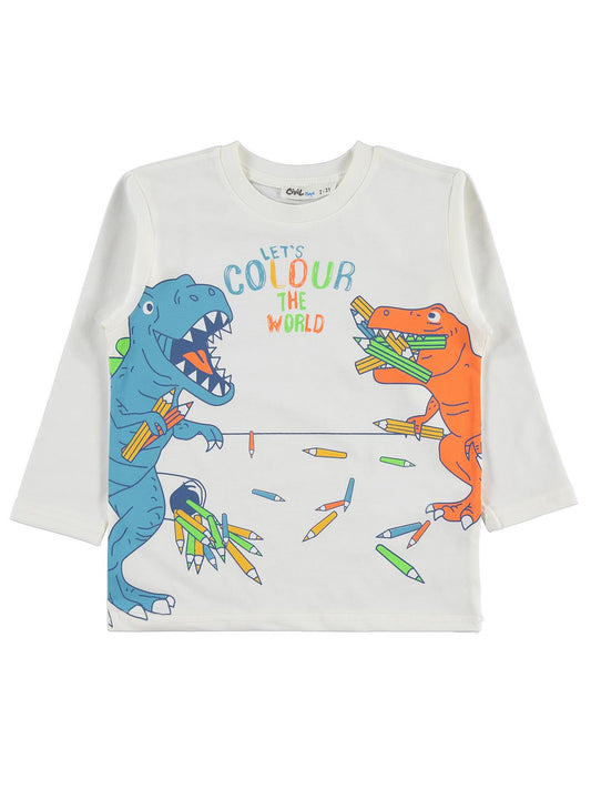 Civil boys colour dinazor baskılı 2-5 yaş sweatshirt - ekru