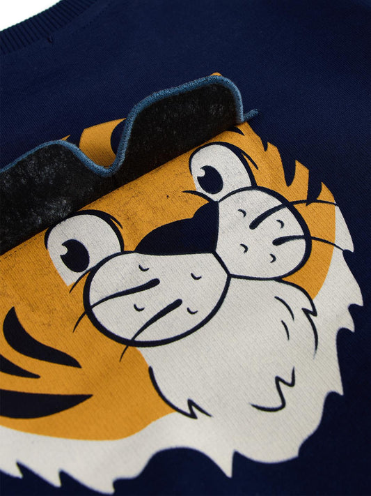 Civil boys tiger baskı-nakışlı 2-5 yaş sweatshirt - lacivert