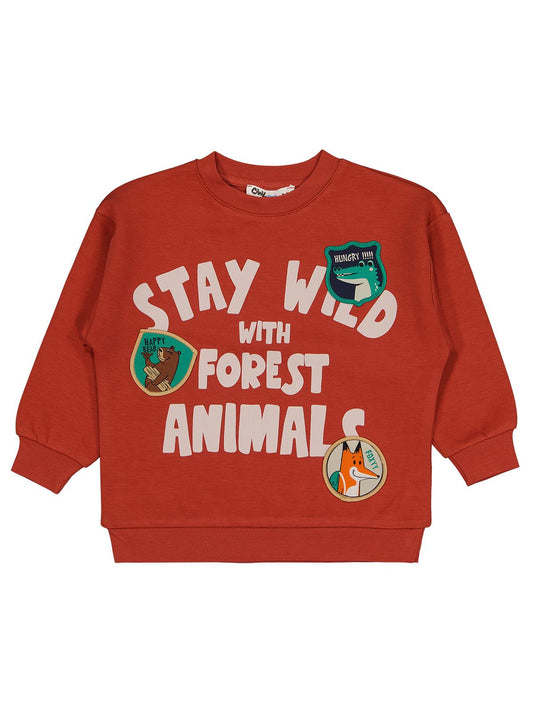 Civil boys stay wıld anımal baskılı 2-5 yaş sweatshirt - turuncu