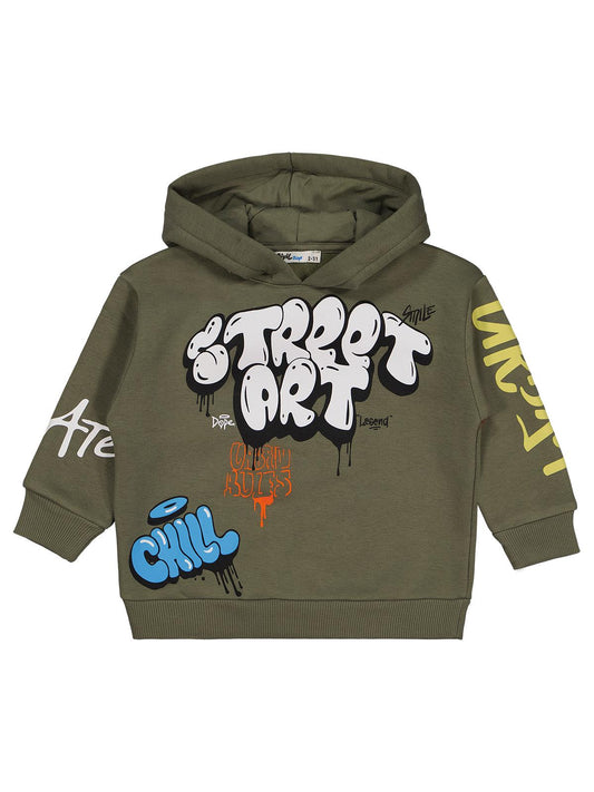 Civil boys street art baskılı 2-5 yaş sweatshirt - haki