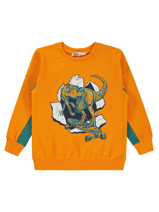 Civil boys dinozor baskılı 2-5 yaş sweatshirt - turuncu