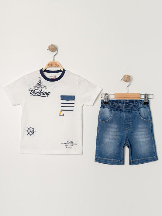 Bizizo yelken baskılı bisiklet yaka 2-5 yaş takım - ekru