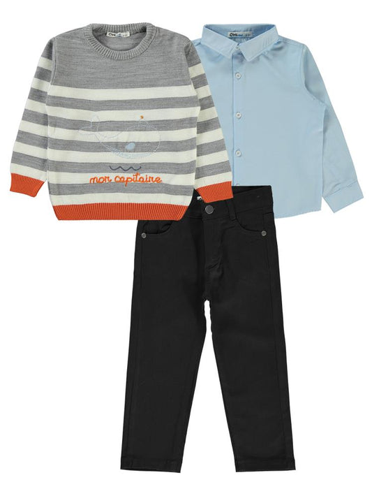 Civil boys mon capitoıne nakışlı 3'lü 2-5 yaş takım - gri