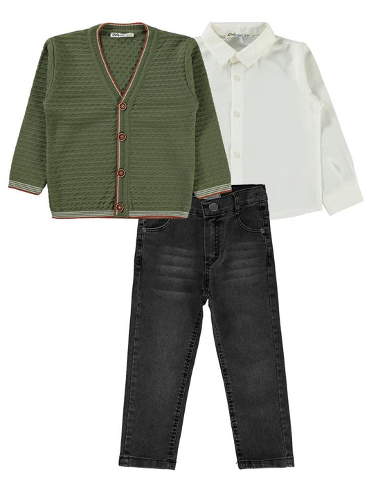 Civil boys hırkalı 3'lu 2-5 yaş takım - haki